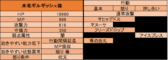 耐性はギルギッシュが幻惑呪文「マヌーサ」を使用するので、攻撃役の方は幻惑耐性を